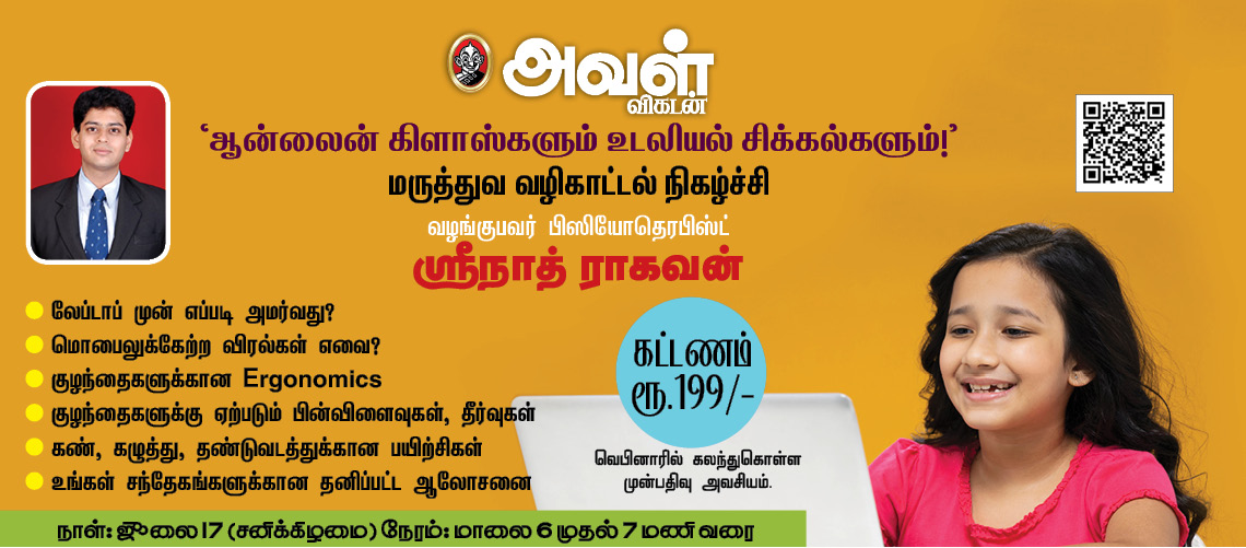 அவள் விகடன் வழங்கும் 'ஆன்லைன் கிளாஸ்களும் உடலியல் சிக்கல்களும்!' - மருத்துவ வழிகாட்டல் நிகழ்ச்சி
