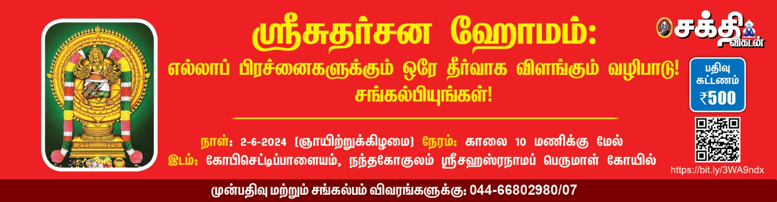 முன்பதிவு மற்றும் சங்கல்பம் விவரங்களுக்கு: 044-66802980/07